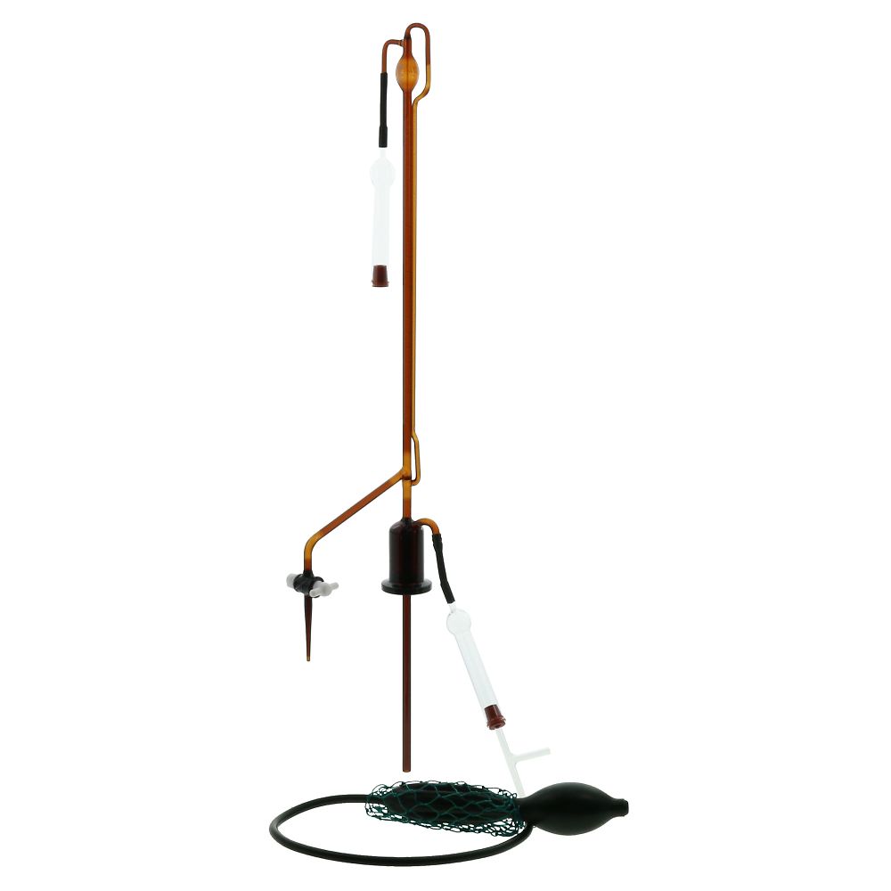 ●自動ビュレットは、ビュレットに比べ薬液の補充が2連球ゴムスプレーの操作で安全かつ正確に行えます。
