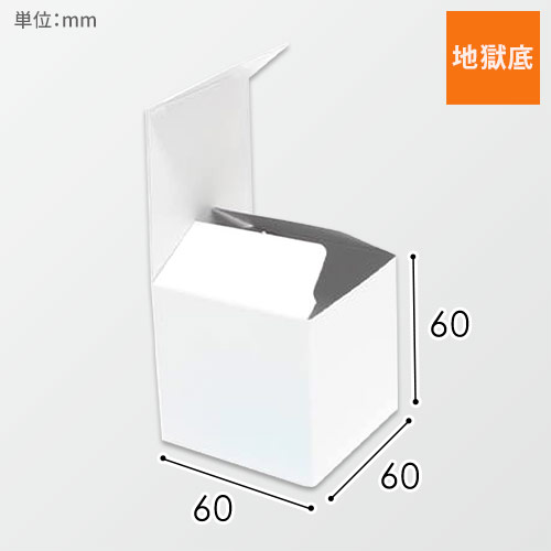 パッケージ包装や内箱などによく使われる形式で、内寸が6cm角の立方体ケース。