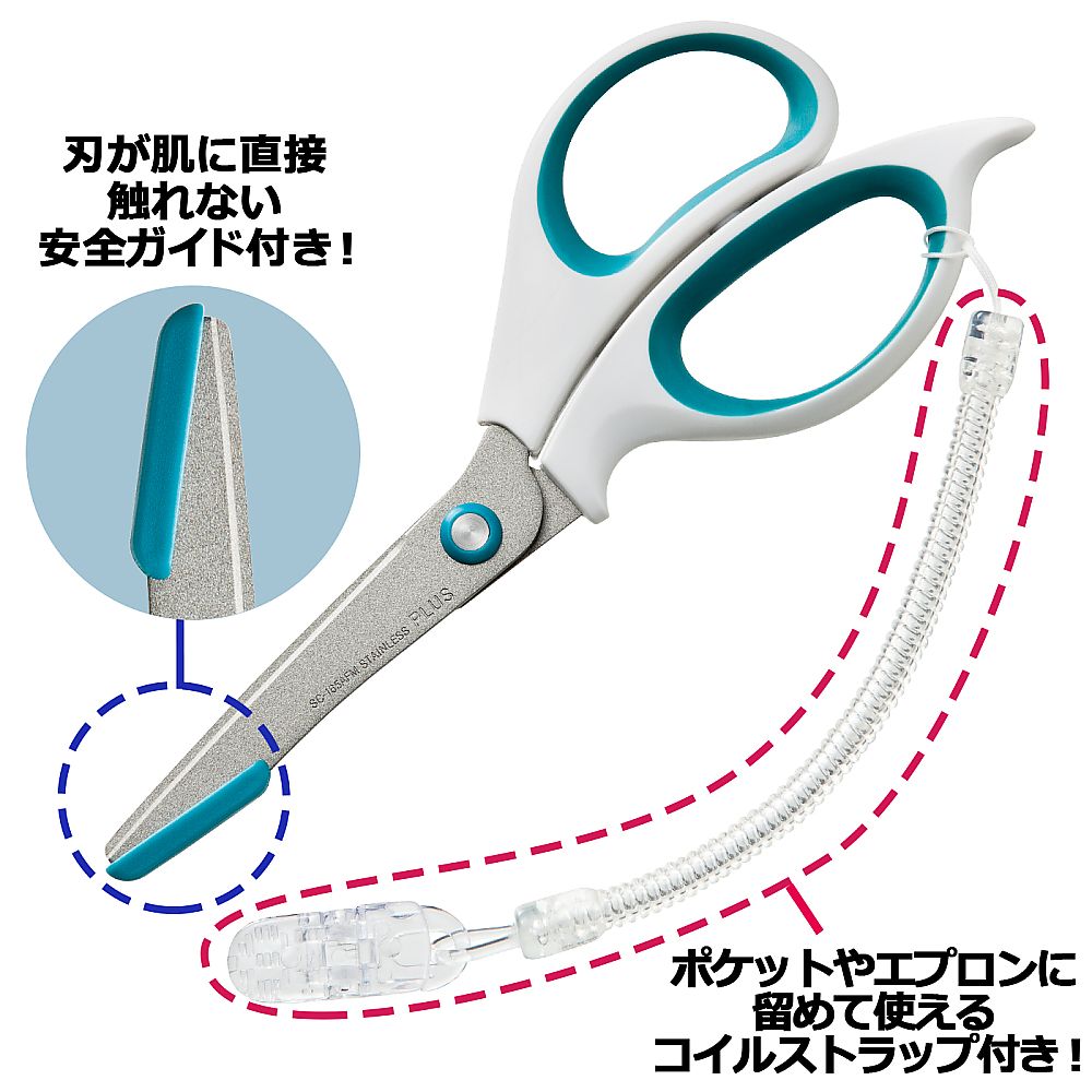 ●刃先は安全ガイド付きで、包帯など肌に密着したものを切るのも安心
