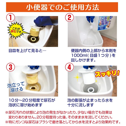 ●小便器目皿の内側の尿石に注いで放置で簡単に落します。