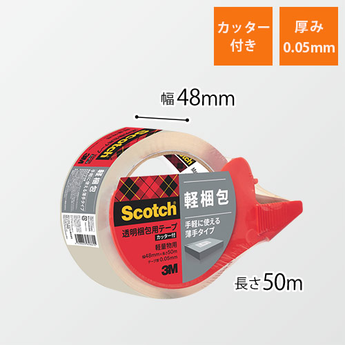 3M 透明梱包用テープ 軽量物用 カッター付 48mm×50m 309DSN