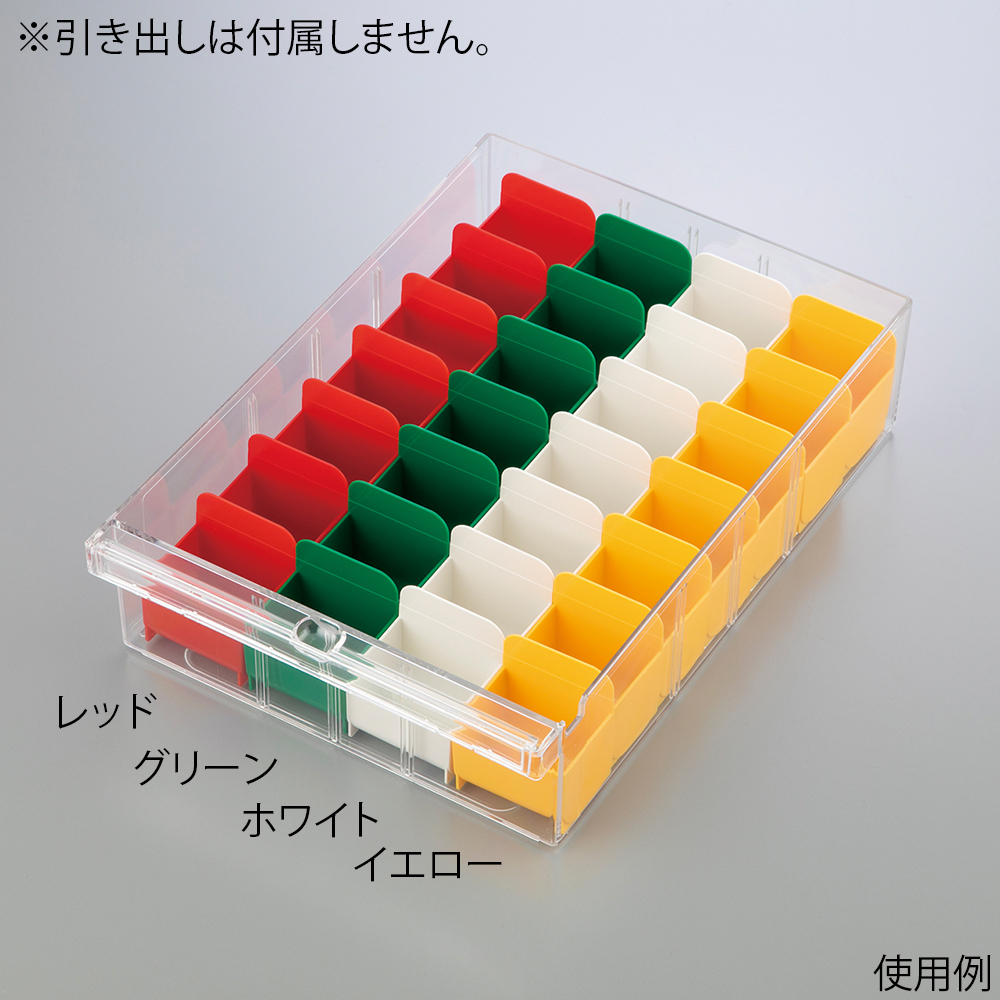 ●与薬カート(7-7719-01~03)や与薬スムースカート(8-4898-11~14)の引き出しに28個(4×7)収納できます。