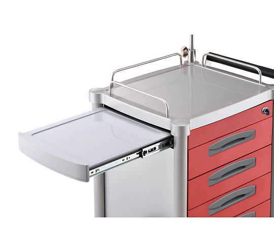 ●付属品:イルリガートルポール、蘇生板(PP製)、ダストボックス(2個)、酸素ボンベ架、ワイヤーバスケット、仕切板セット(縦2・横8)×3段分、引出し用すべり止めマット、鍵×2本、六角レンチ2種類(各1本)