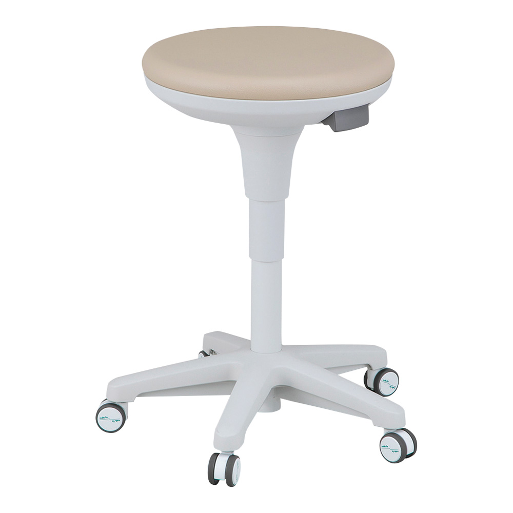 ●立位に近い位置まで高さを調整できるので高作業者に適しています。分厚く、もっちり感のある座面が特長のロングライフ設計!