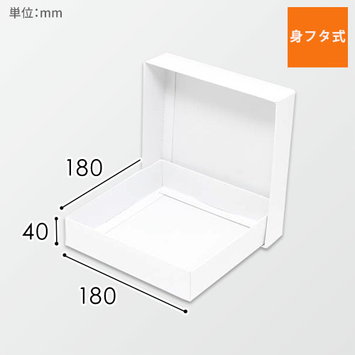 パッケージやギフト包装などによく使われる形式で、底面が内寸18cm角の正方形になっている箱。