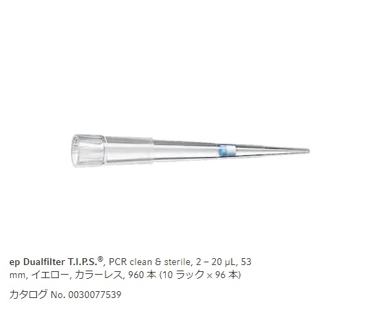フィルターチップ(ep デュアルフィルター) 2.0~20μL 96本/ラック×10ラック