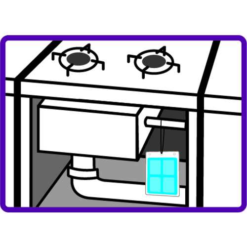 マンホールや給茶機、出入口や厨房機器の隙間など、害虫の発生源や、侵入を防ぎたい場所に吊り下げてご使用ください。