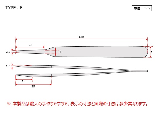 ●2Aタイプに比べ先端がやや幅広く、また薄型に仕上げてあります。