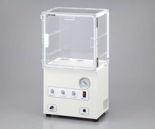 ●材質:デシケーター部/透明強化PMMA(アクリル)・板厚20mm、下部ポンプ室/スチール焼付塗装