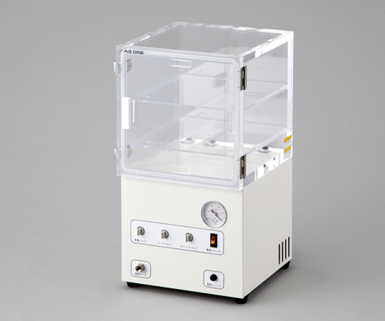 ●材質:デシケーター部/透明強化PMMA(アクリル)・板厚20mm、下部ポンプ室/スチール焼付塗装