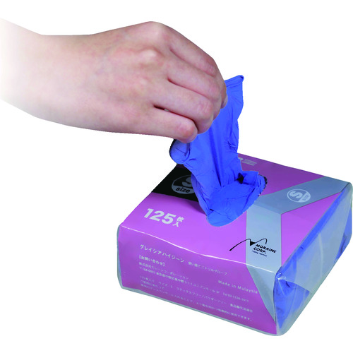 ●袖口(手首部)から1枚ずつ取り出せて衛生的な大容量ビニールパック(125枚入)です。
