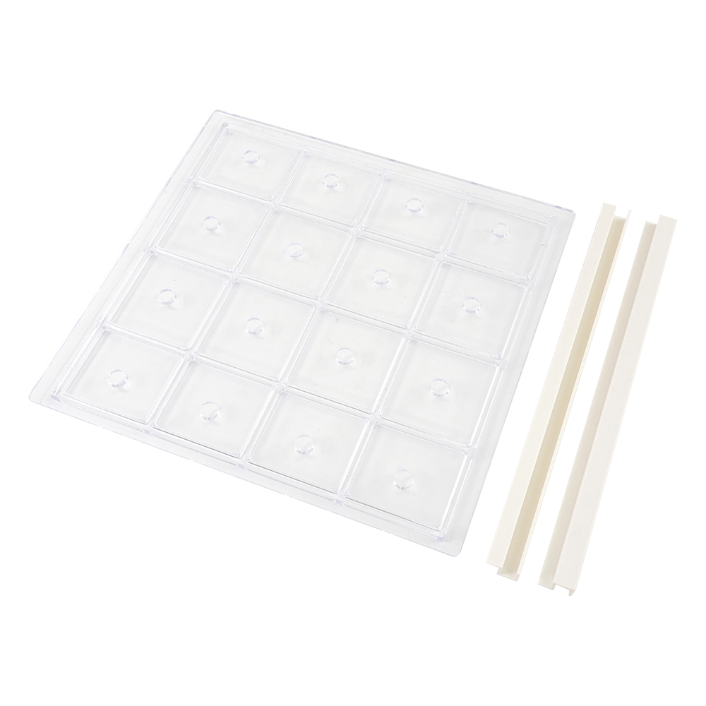 本体:透明PMMA(アクリル)、棚板:PS(ポリスチレン)