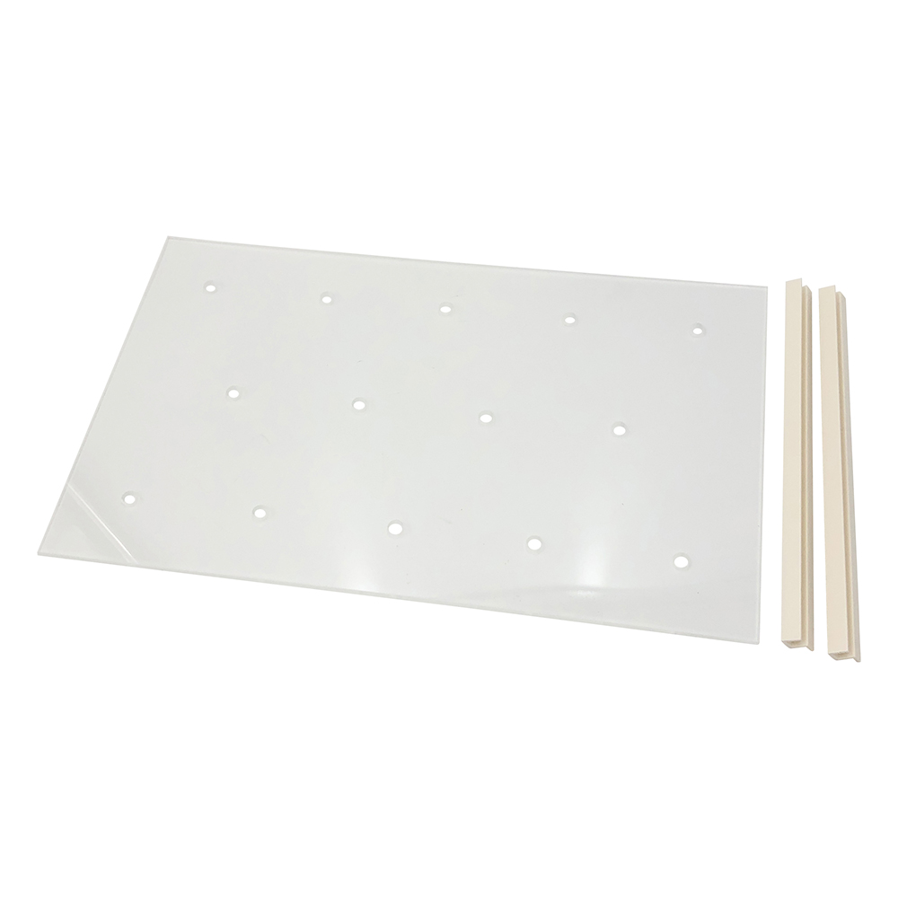 本体:透明PMMA(アクリル)、棚板:PS(ポリスチレン)