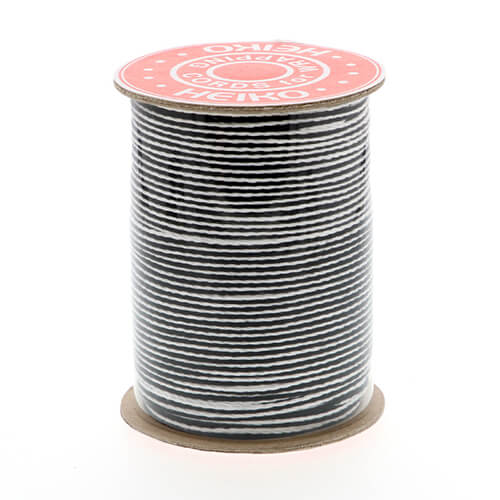 弔事の返礼品などにかけて結ぶ黒白の紐。材質は染色性や発色性に優れたレーヨンを使用しております。サイズは約幅2mm×150mです。あらたまった場面での品にぴったり合う和テイストになっており、格式高い包装の仕上がりを実現します。葬儀や法事などの返礼品のラッピングにいかがでしょうか。