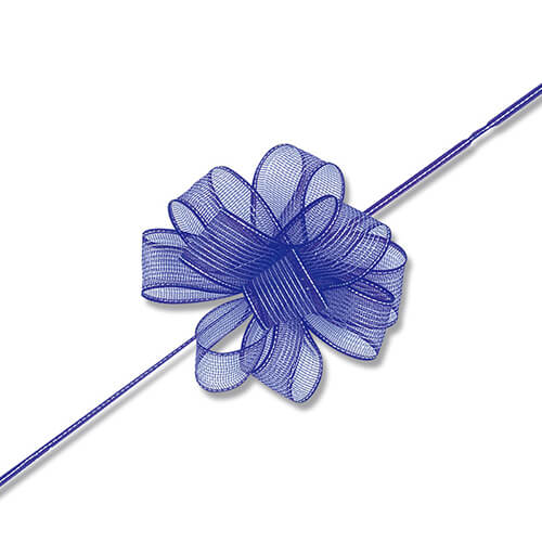 2)両側の中央の紐を持ちリボンを片側に引きよせる。