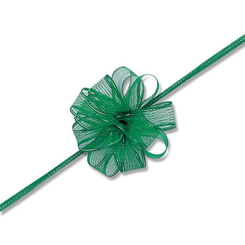 2)両側の中央の紐を持ちリボンを片側に引きよせる。