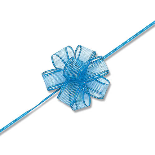 2)両側の中央の紐を持ちリボンを片側に引きよせる。