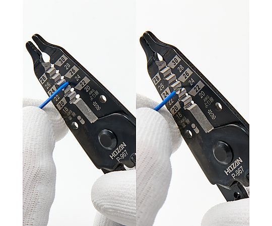 ●適応電線:AWG単線:28/26/24/22/20/18、AWGより線:30/28/26/24/22/20、単線:0.32/0.40/0.51/0.64/0.81/1.02mmφ、より線:0.055/0.089/0.14/0.22/0.34/0.53mm^2