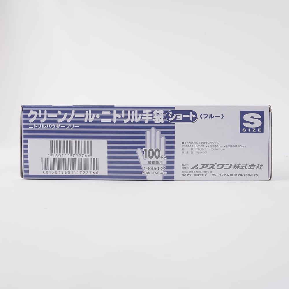 クリーンノール ニトリル手袋 ショート (パウダーフリー) ブルー S 100枚入