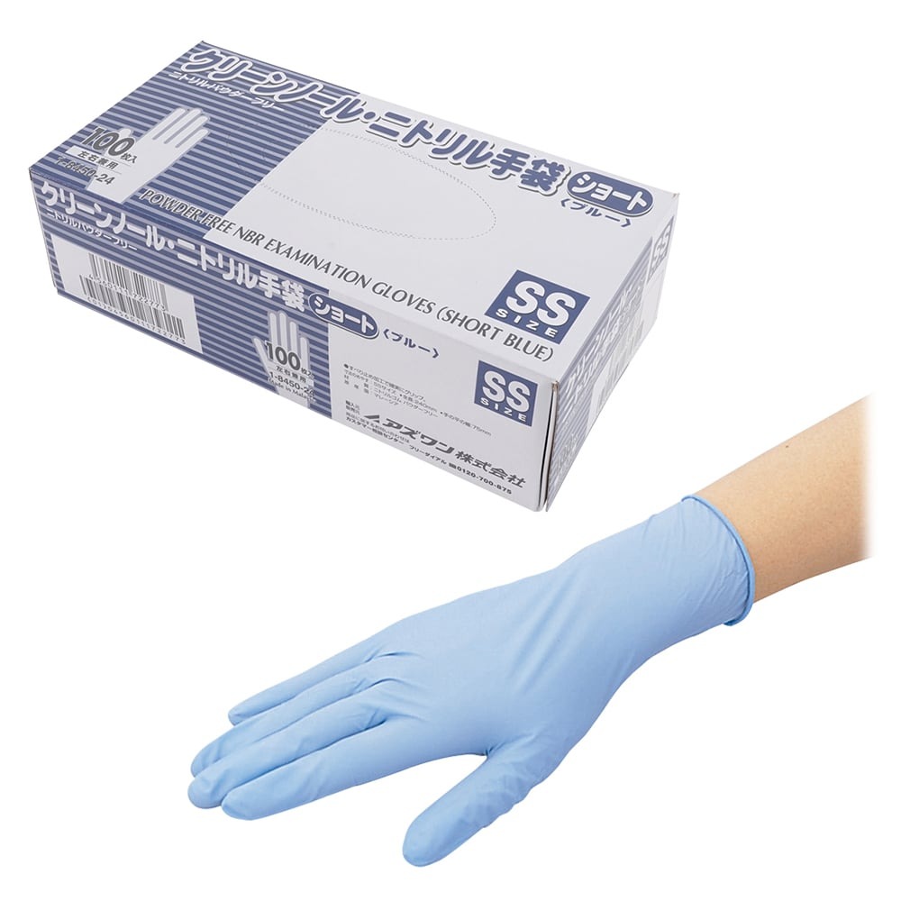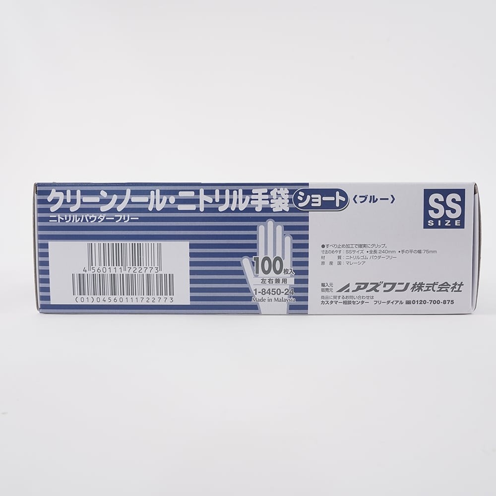 クリーンノール ニトリル手袋 ショート (パウダーフリー) ブルー SS 100枚入