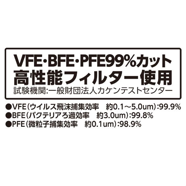 ※VFE(ウイルス飛沫捕集効率):約0.1~5.0um、99.9%カット。