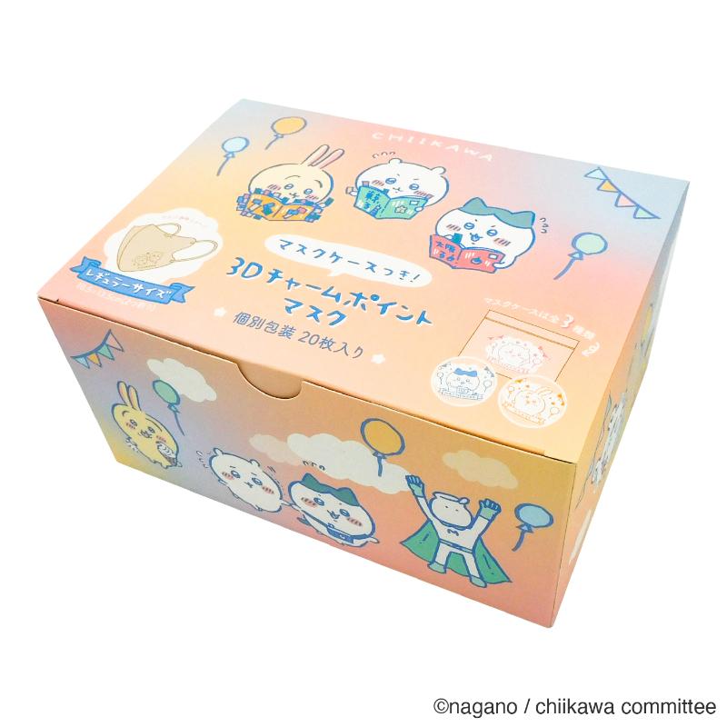ちいかわのワンポイントデザインが付いたかわいい立体型構造3層不織布マスク。持ち運びに便利な個別包装タイプ。全3種のデザインのマスクケース付き。マスクを使い終わった後も小物入れとして使えます。