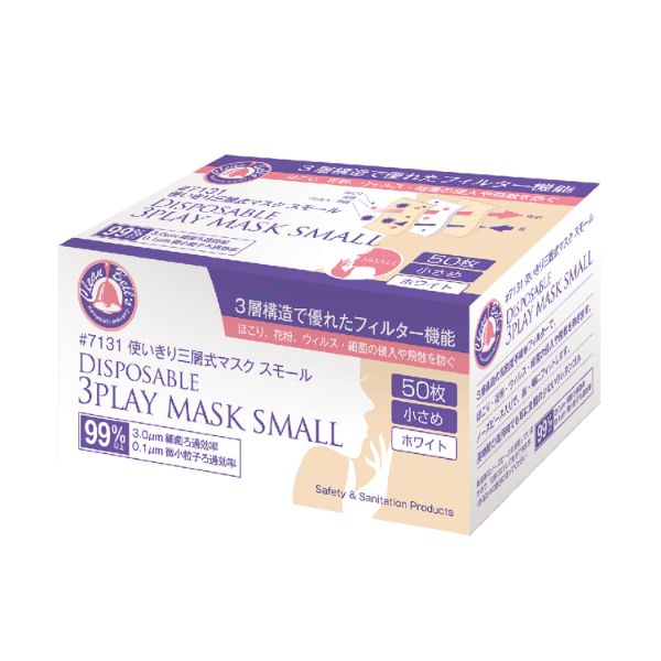使い捨てマスク #7131 三層式マスク スモール 50枚入 川西工業
