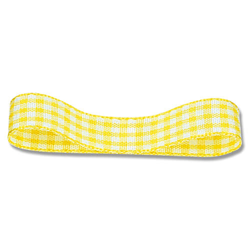 黄色のギンガムチェック柄リボン。サイズは幅14mm×30m巻で、材質はポリエステルです。ギンガムチェック柄は、ギフトラッピングシーンで大人気。かわいらしく、ノスタルジックな風合いもあります。ギフトやお花のラッピングアクセントとしていかがでしょうか。手芸やハンドメイド作品のアレンジ材料としてもお使いいただけます。
