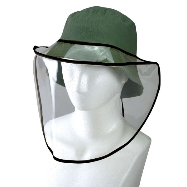 子どもでも大人でも使える帽子につけるフェイスシールド。帽子の上から着用可能です。ストッパー付きで簡単にサイズ調節もできます。[生産国]中国。