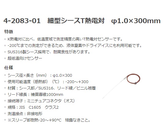 熱電対データロガー(センサー付) シース型センサー(超低温)