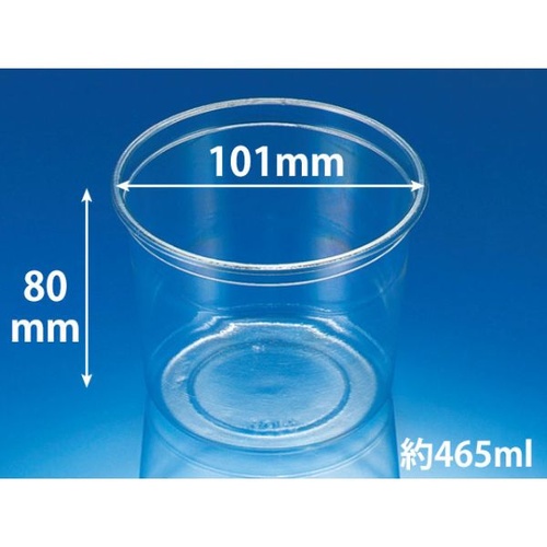 従来のクリーンカップにバイオPETを一部混合させた植物由来の汎用透明丸カップ。