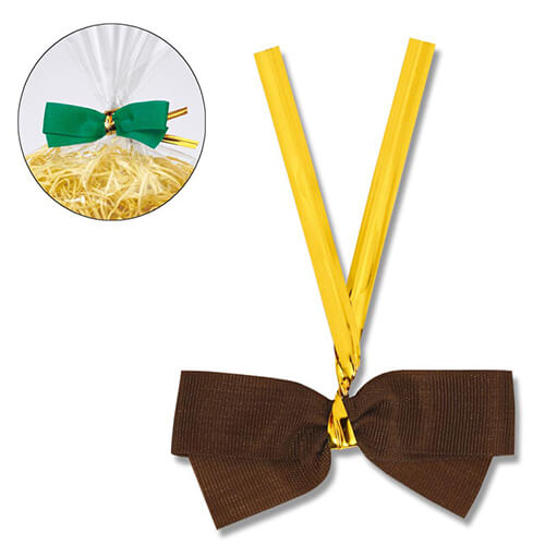袋の口留めに便利な茶色のリボン付きタイ