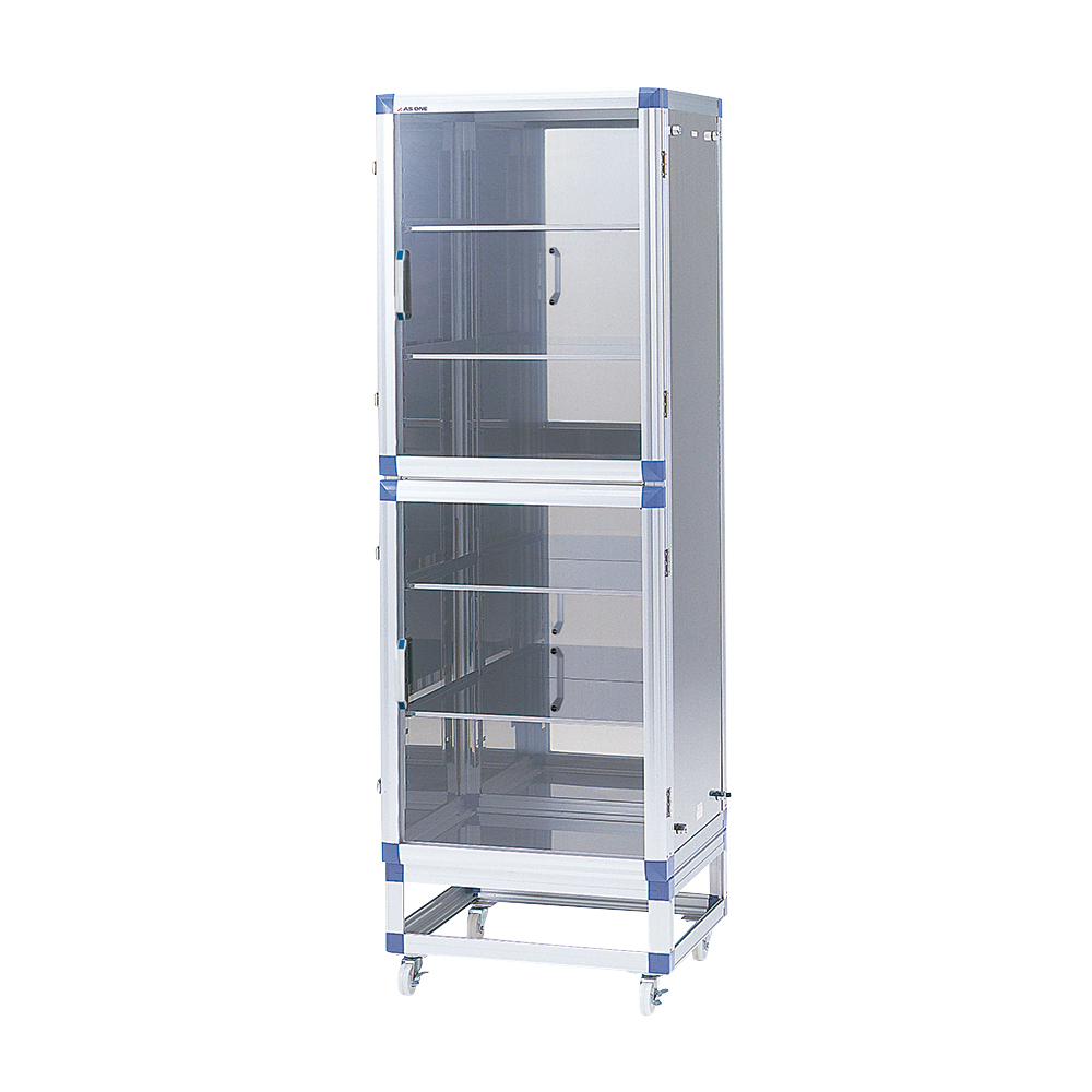●材質:本体/ステンレス(SUS304)、扉/制電PVC板、枠/アルミサッシ、棚板/ステンレス(SUS430)