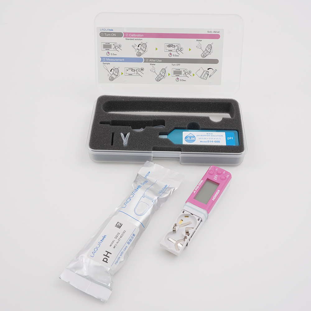 ●付属品:サンプリングシート、保管ケース、スポイト、pH4標準液(14mL)×1本、pH7標準液(14mL)×1本