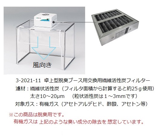 ●繊維活性炭は粒状活性炭よりも汚染物質との接触面積が大きいので、素早く臭いを吸着できます。