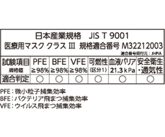 ●日本産業規格「JIS T 9001 医療用マスク クラスⅢ」適合