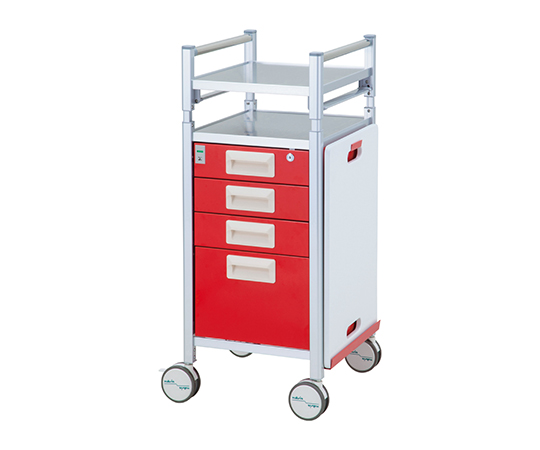 ●軽量で丸みのあるアルミフレームを使用した昇降式ワゴンです。