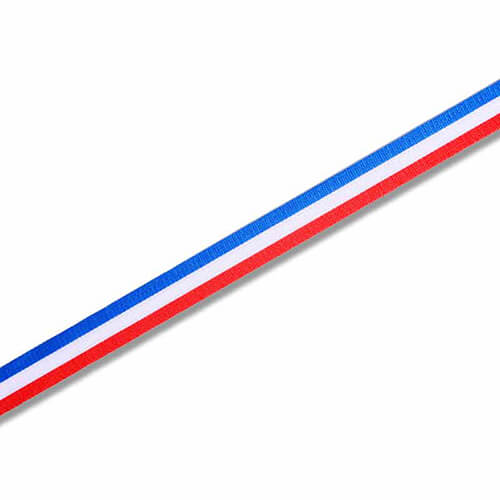 フランス国旗をイメージした、トリコロール模様のリボン。サイズは幅12mm×30m巻で、材質はレーヨン・ナイロンです。フランス料理店・菓子店の、お持ち帰りやお土産用ギフトの包装にピッタリです。ラッピングのアクセントとしていかがでしょうか。※台紙(メンコ)は付いておりません