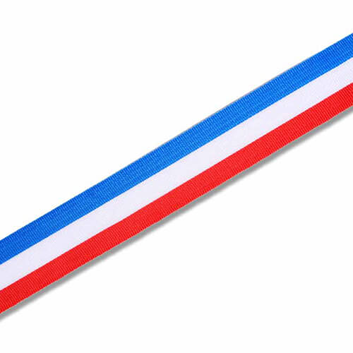 フランス国旗をイメージした、トリコロール模様のリボン。サイズは幅24mm×30m巻で、材質はレーヨン・ナイロンです。フランス料理店・菓子店の、お持ち帰りやお土産用ギフトの包装にピッタリです。ラッピングのアクセントとしていかがでしょうか。