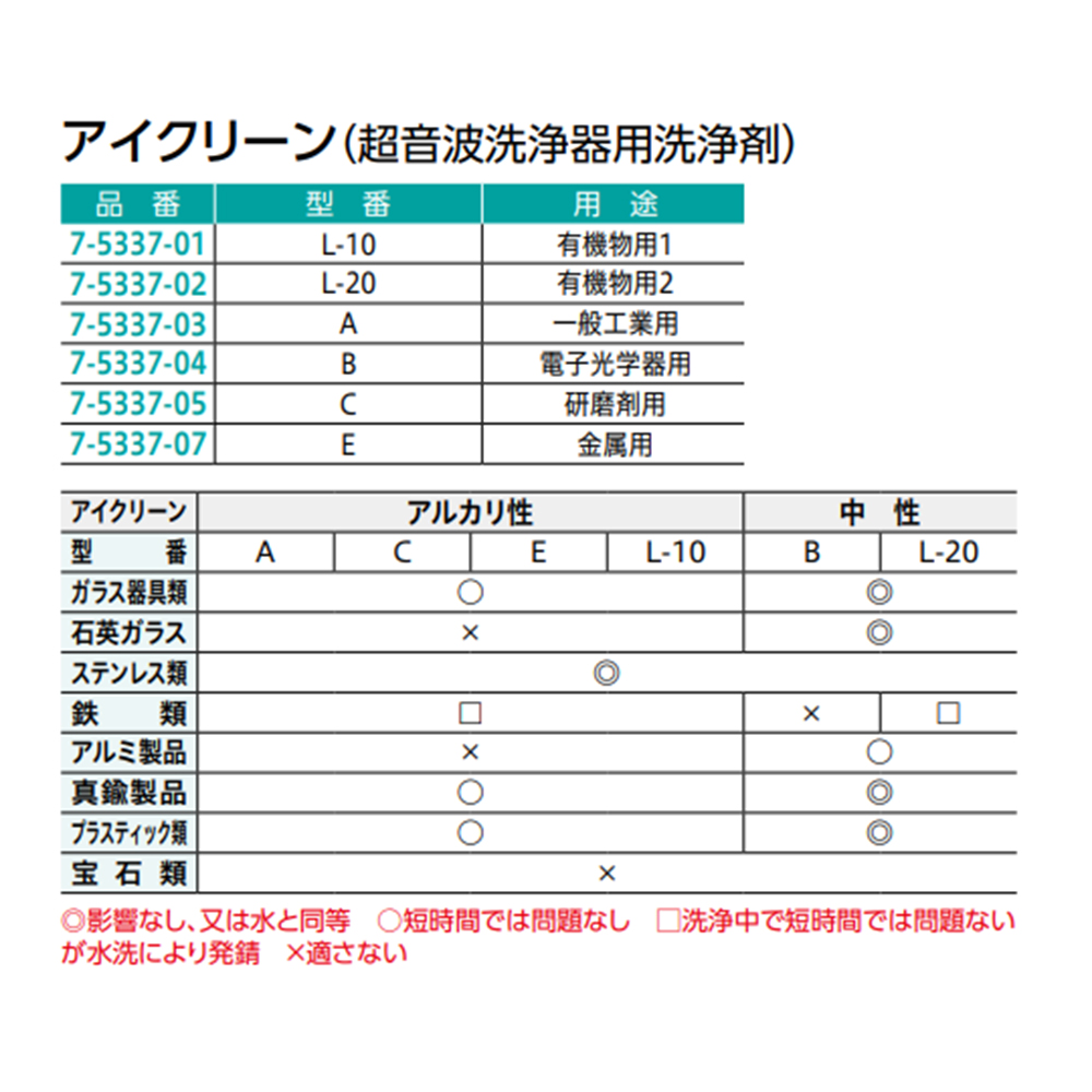 ●▼洗浄液の中で短時間では問題ないが、水洗により発錆:鉄類