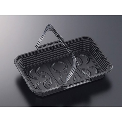 取手付きで軽食の持ち運びにも使えるトレー型容器。