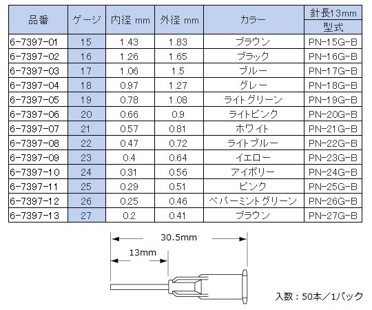 ●材質:針元/POM(ポリアセタール)、ニードル/ステンレス(SUS304)
