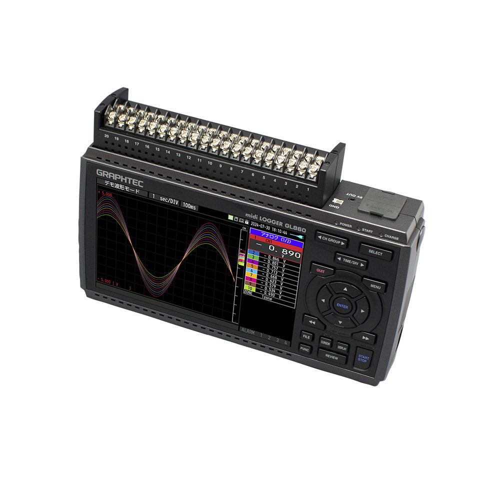 ●サンプリング周期:5ms~1h(5~50msは電圧のみ、サンプリング周期によりch制限あり)