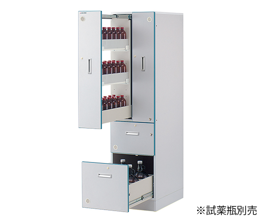 ●上段に500mL試薬瓶・中段に1000mL試薬瓶・下段にガロン瓶を収納できます。