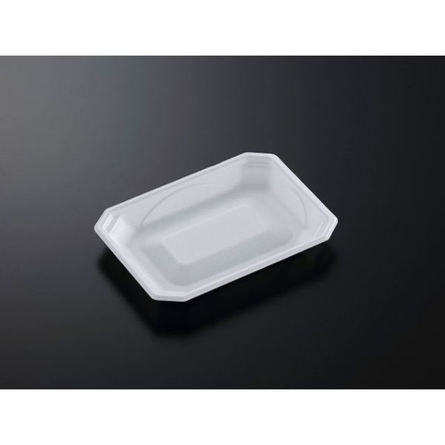惣菜トレー。上げ底とライン適性を両立。隙間ができて、陳列しやすく手に取りやすい隅切り形状です。