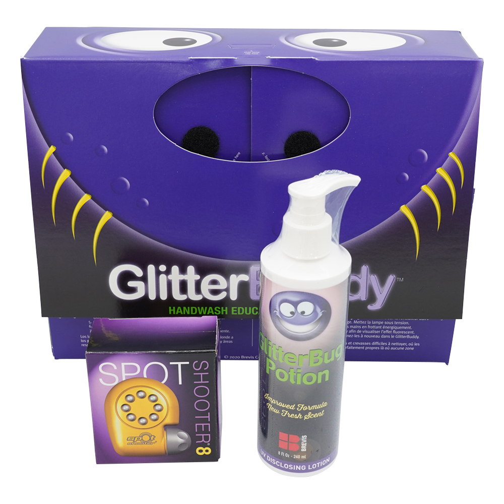 ●専用蛍光ローションまたはパウダーを手に擦り込み、洗った後ライトにかざすと洗い残しをチェックできます。