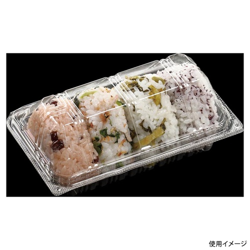 ワンタッチで使いやすい折り蓋嵌合(かんごう)タイプのおむすび容器。