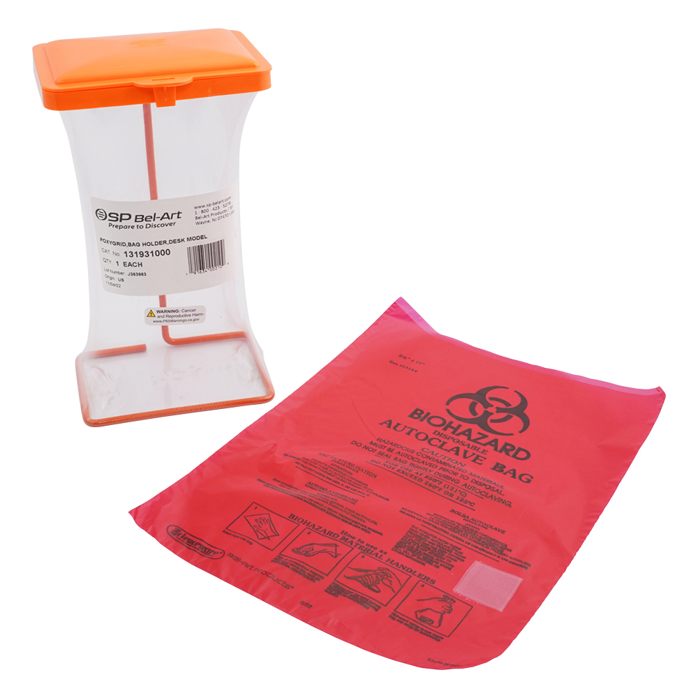 ●明るい赤色のバイオハザードマーク・滅菌インジケーター付きのオートクレーブ対応バッグで、開けやすいように長いフラップが付いています。