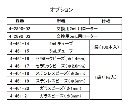 ●用途に合わせてセラミック、ガラス、ステンレス製のビーズが選択できます(各種チューブ、ビーズは品番4-461-14~21が使用できます)。