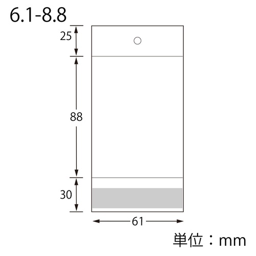 厚0.03×幅61×長さ88+ヘッダー25+テープ30mm/穴径:8mm